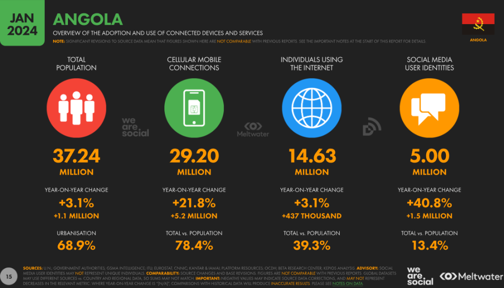 Kemp, S. (2024, February 23). Digital 2024: Angola — DataReportal – Global Digital Insights. DataReportal – Global Digital Insights. https://datareportal.com/reports/digital-2024-angola